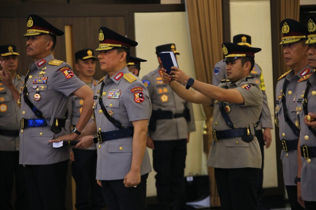 “Kapolri Jenderal Polisi Listyo Sigit Prabowo memimpin upacara pelantikan dan serah terima jabatan pejabat utama Mabes Polri Dan para Kapolda, serta upacara laporan kenaikan pangkat ke dan dalam golongan Pati Polri,” kata Kabag Penum Divisi Humas Polri Kombes Pol Erdi A Chaniago dalam keterangan tertulisnya, Sabtu (28/9/2024).