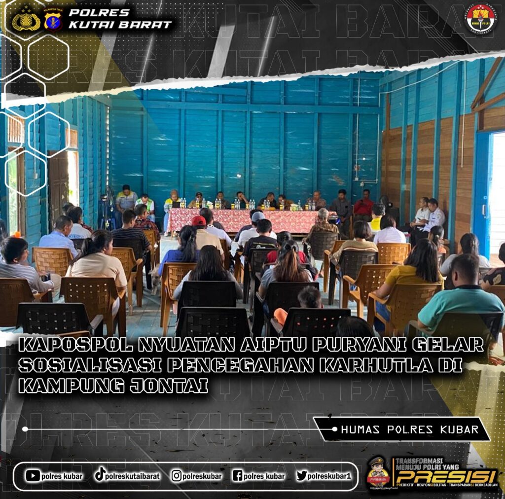 Damai – Selasa, 24 September 2024, AIPTU Puryani, selaku Kapospol Nyuatan, melaksanakan sosialisasi mengenai pencegahan dan penanggulangan Kebakaran Hutan dan Lahan (Karhutla) di Balai Pertemuan Umum (BPU) Kampung Jontai, Kecamatan Nyuatan. Acara tersebut dihadiri oleh sejumlah tokoh penting, antara lain Burhanudin, Petinggi Kampung Jontai; Burhan, Petinggi Kampung Dempar; Lintasius, Ketua BPK Jontai; anggota Masyarakat Peduli Api (MPA), serta warga Kampung Jontai.