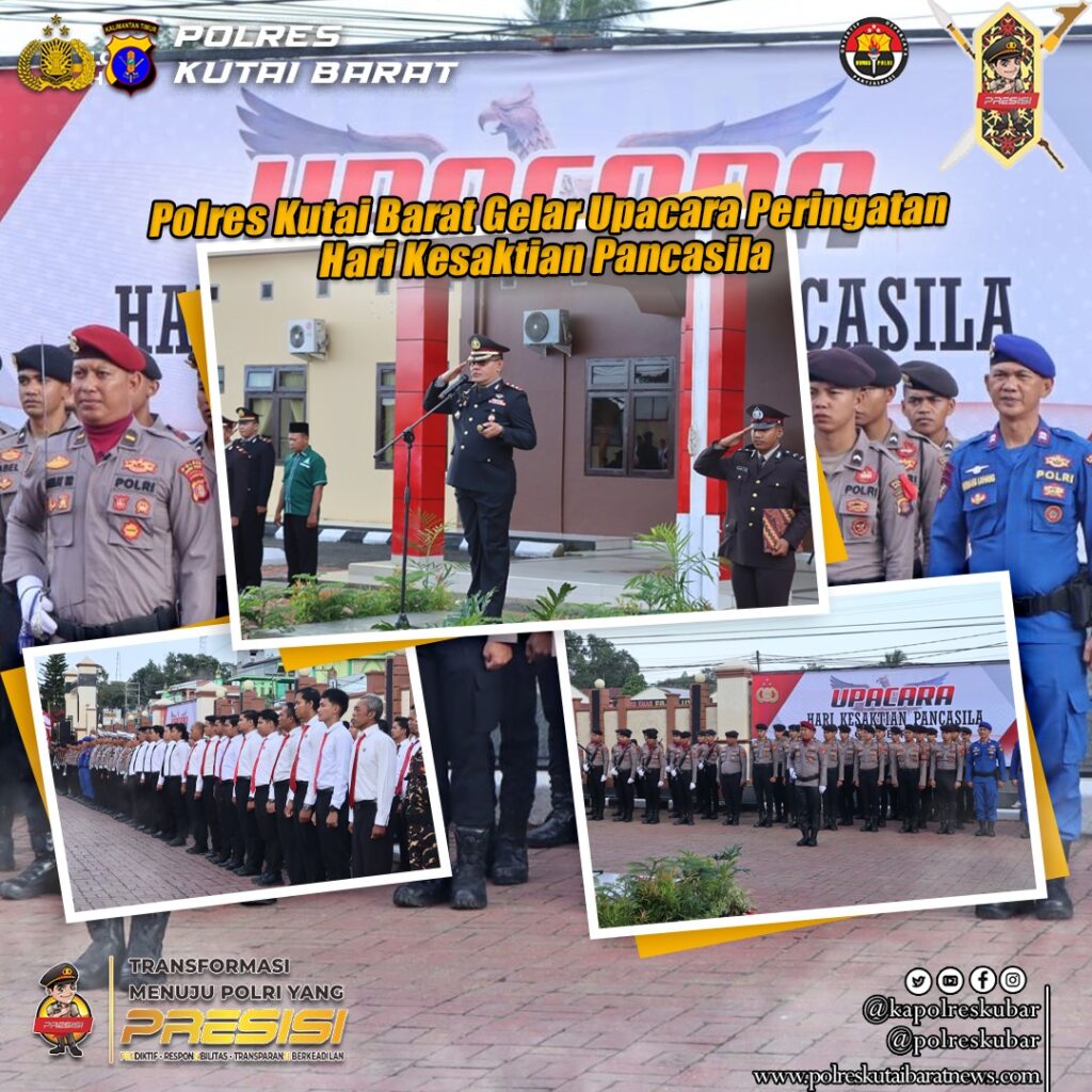 Kutai Barat – Polres Kutai Barat menyelenggarakan upacara peringatan Hari Kesaktian Pancasila pada Senin, 1 Oktober 2024, yang dipimpin langsung oleh Kapolres Kutai Barat, AKBP Kade Budiyarta, S.I.K. Upacara tersebut berlangsung khidmat di halaman Mapolres Kutai Barat, dihadiri oleh jajaran Pejabat Utama (PJU) Polres Kutai Barat serta Ketua Barisan Ansor Serbaguna (Banser) Kutai Barat.