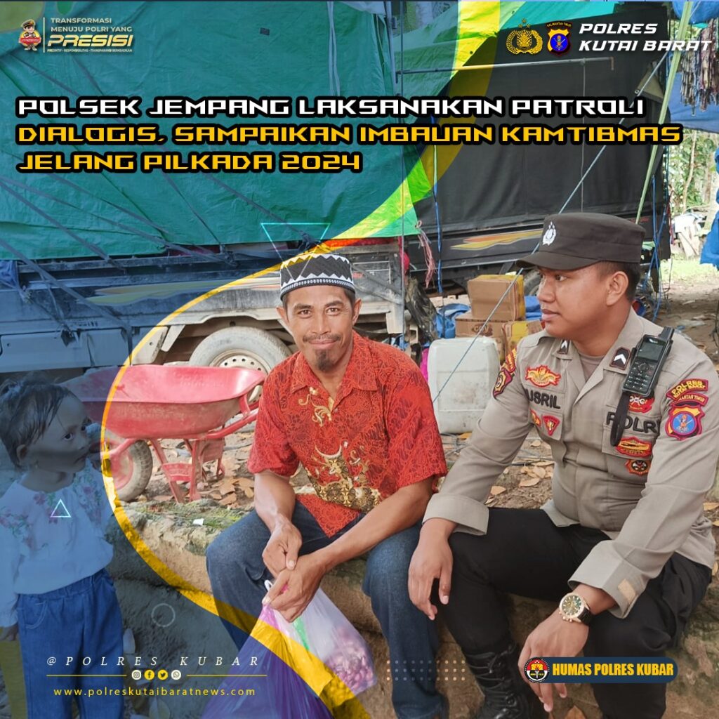 Kutai Barat – Dalam upaya mencegah tindak kejahatan dan gangguan keamanan dan ketertiban masyarakat (kamtibmas), Polsek Jempang, Polres Kutai Barat, Polda Kaltim melaksanakan patroli dialogis di Kampung Tanjung Isuy, Kecamatan Jempang pada Senin (30/09/2024).